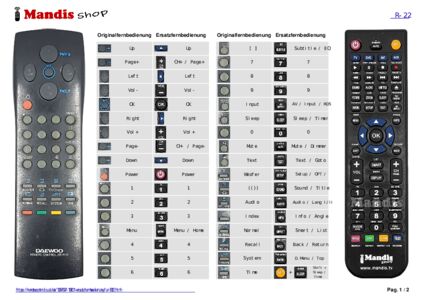 Ein Dokument ist enthalten, um die Verwendung der neuen Fernbedienung zu erleichtern, indem es die Tastenbelegung zeigt.