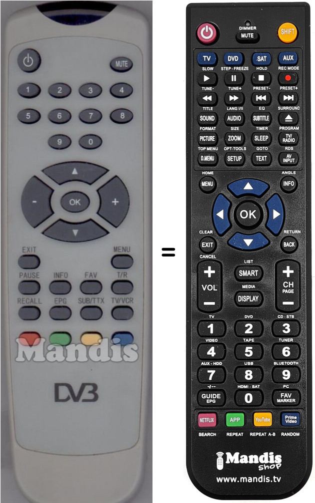Es handelt sich jedoch nicht um eine Universalfernbedienung sondern um eine Fernbedienung die das Original ersetzt.