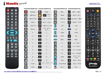 Ein Dokument ist enthalten, um die Verwendung der neuen Fernbedienung zu erleichtern, indem es die Tastenbelegung zeigt.