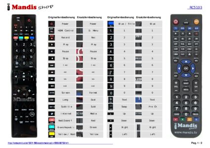 Diese Fernbedienung ersetzt Ihre RC5103 in vollem Umfang und bietet alle Funktionen des Originals.