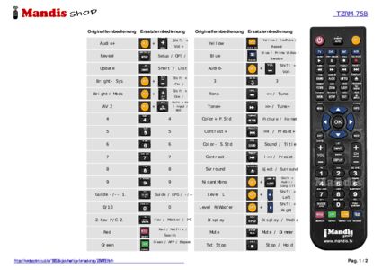 Ein Dokument ist enthalten, um die Verwendung der neuen Fernbedienung zu erleichtern, indem es die Tastenbelegung zeigt.