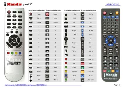 Diese Fernbedienung ersetzt Ihre REMCON1530 in vollem Umfang und bietet alle Funktionen des Originals.