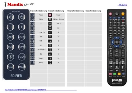 Home > Marken > Fernbedienungen EDIFIER > Fernbedienung für EDIFIER RC10A1