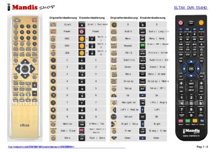 Diese Fernbedienung ersetzt Ihre DVR554HD in vollem Umfang und bietet alle Funktionen des Originals.