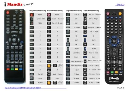 Ein Dokument ist enthalten, um die Verwendung der neuen Fernbedienung zu erleichtern, indem es die Tastenbelegung zeigt.