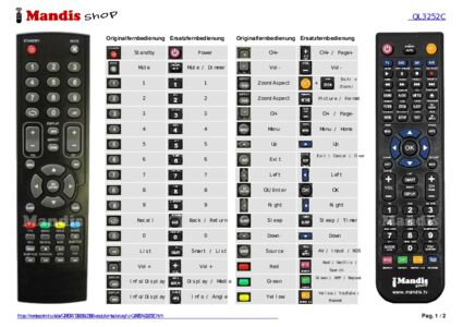 Ein Dokument ist enthalten, um die Verwendung der neuen Fernbedienung zu erleichtern, indem es die Tastenbelegung zeigt.