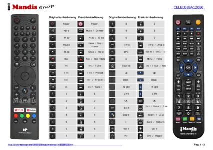 Ein Dokument ist enthalten, um die Verwendung der neuen Fernbedienung zu erleichtern, indem es die Tastenbelegung zeigt.