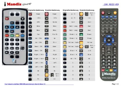 Ein Dokument ist enthalten, um die Verwendung der neuen Fernbedienung zu erleichtern, indem es die Tastenbelegung zeigt.