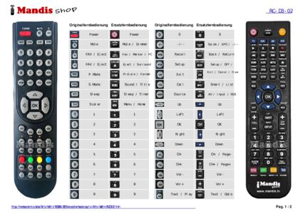 Ein Dokument ist enthalten, um die Verwendung der neuen Fernbedienung zu erleichtern, indem es die Tastenbelegung zeigt.