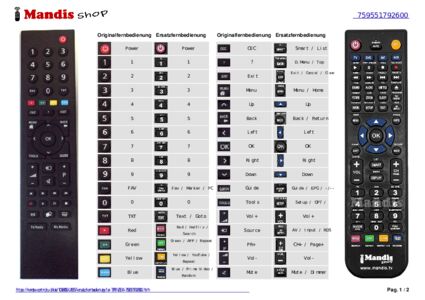 Ein Dokument ist enthalten, um die Verwendung der neuen Fernbedienung zu erleichtern, indem es die Tastenbelegung zeigt.