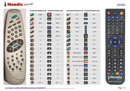 Diese Fernbedienung ersetzt Ihre RC 1040 (20123441) in vollem Umfang und bietet alle Funktionen des Originals.