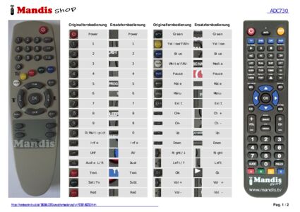 Ein Dokument ist enthalten, um die Verwendung der neuen Fernbedienung zu erleichtern, indem es die Tastenbelegung zeigt.