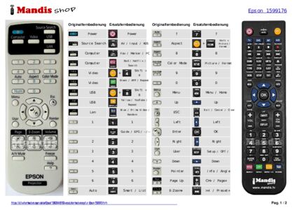 Im Folgenden zeigen wir Ihnen die Zuordnung jedes einzelnen Knopfes der Originalfernbedienung zu der Taste, die dieselbe Funktion auf der Ersatzfernbedienung ausführt. In einigen Fällen müssen Sie möglicherweise die UMSCHALT-Taste drücken, bevor Sie eine andere Taste drücken, um bestimmte Aktionen auszuführen. Diese zusätzlichen Funktionen werden oft wenig genutzt und dienen dazu, das Verständnis der Ersatzfernbedienung zu erleichtern oder weil die Originalfernbedienung mehr Tasten hat als das entsprechende Modell.