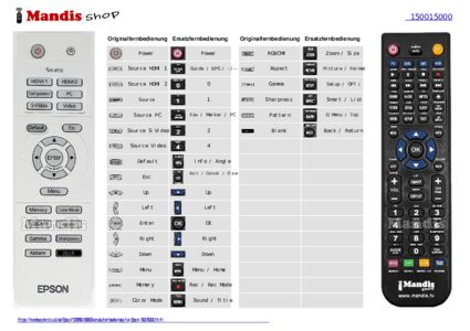 Ein Dokument ist enthalten, um die Verwendung der neuen Fernbedienung zu erleichtern, indem es die Tastenbelegung zeigt.