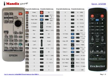 Home > Marken > Fernbedienungen Epson > Fernbedienung für Epson 1452589