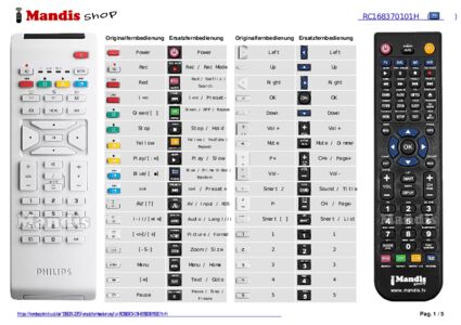 Im Folgenden zeigen wir Ihnen die Zuordnung jedes einzelnen Knopfes der Originalfernbedienung zu der Taste, die dieselbe Funktion auf der Ersatzfernbedienung ausführt. In einigen Fällen müssen Sie möglicherweise die UMSCHALT-Taste drücken, bevor Sie eine andere Taste drücken, um bestimmte Aktionen auszuführen. Diese zusätzlichen Funktionen werden oft wenig genutzt und dienen dazu, das Verständnis der Ersatzfernbedienung zu erleichtern oder weil die Originalfernbedienung mehr Tasten hat als das entsprechende Modell.
