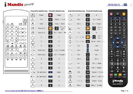 Ein Dokument ist enthalten, um die Verwendung der neuen Fernbedienung zu erleichtern, indem es die Tastenbelegung zeigt.