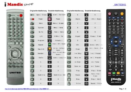 Ein Dokument ist enthalten, um die Verwendung der neuen Fernbedienung zu erleichtern, indem es die Tastenbelegung zeigt.