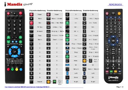 Ein Dokument ist enthalten, um die Verwendung der neuen Fernbedienung zu erleichtern, indem es die Tastenbelegung zeigt.