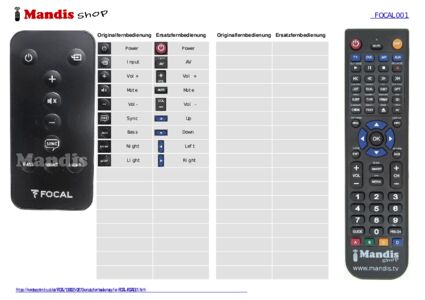 Diese Fernbedienung ersetzt Ihre FOCAL001 in vollem Umfang und bietet alle Funktionen des Originals.