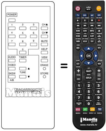 Fernbedienung, die das Original und die Gesamtheit seiner Funktionen, vollständig ersetzt.
