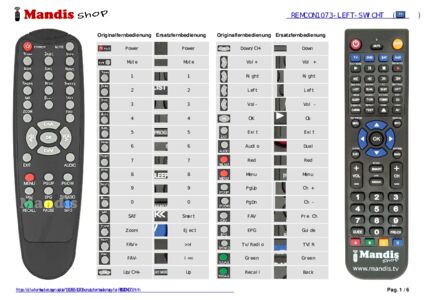 Ein Dokument ist enthalten, um die Verwendung der neuen Fernbedienung zu erleichtern, indem es die Tastenbelegung zeigt.