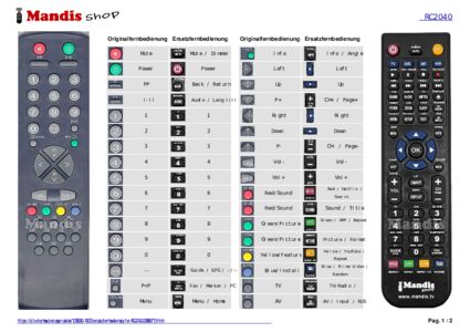 Ein Dokument ist enthalten, um die Verwendung der neuen Fernbedienung zu erleichtern, indem es die Tastenbelegung zeigt.