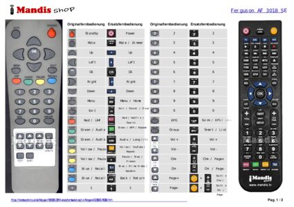 Ein Dokument ist enthalten, um die Verwendung der neuen Fernbedienung zu erleichtern, indem es die Tastenbelegung zeigt.