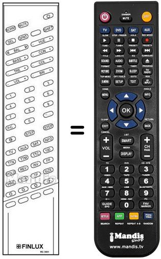 Fernbedienung, die das Original und die Gesamtheit seiner Funktionen, vollständig ersetzt.