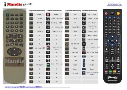 Ein Dokument ist enthalten, um die Verwendung der neuen Fernbedienung zu erleichtern, indem es die Tastenbelegung zeigt.