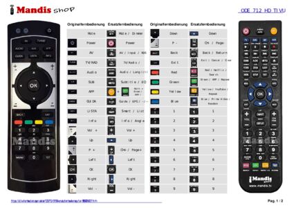 Diese Fernbedienung ersetzt Ihre ODE712HDTV in vollem Umfang und bietet alle Funktionen des Originals.
