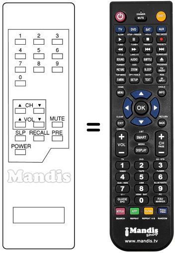 Es handelt sich jedoch nicht um eine Universalfernbedienung sondern um eine Fernbedienung die das Original ersetzt.