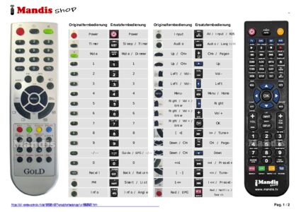 Ein Dokument ist enthalten, um die Verwendung der neuen Fernbedienung zu erleichtern, indem es die Tastenbelegung zeigt.