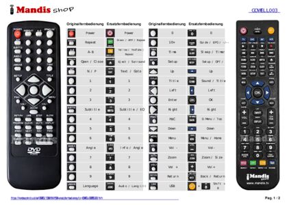 Ein Dokument ist enthalten, um die Verwendung der neuen Fernbedienung zu erleichtern, indem es die Tastenbelegung zeigt.