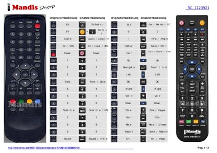 Ein Dokument ist enthalten, um die Verwendung der neuen Fernbedienung zu erleichtern, indem es die Tastenbelegung zeigt.