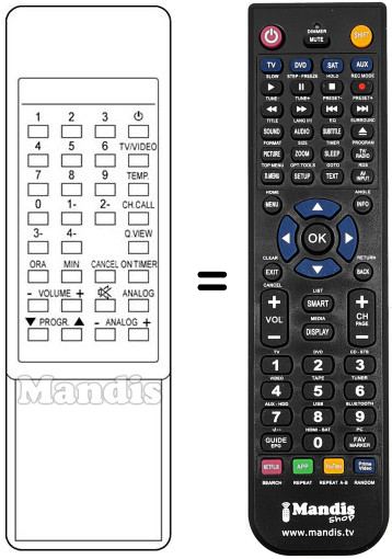 Fernbedienung, die das Original und die Gesamtheit seiner Funktionen, vollständig ersetzt. Es handelt sich jedoch nicht um eine Universalfernbedienung sondern um eine Fernbedienung die das Original ersetzt. Sie erhalten eine nach Einlegen der Batterien sofort einsatzbereite Fernbedienung. Jegliches Programmieren entfällt. Wir geben umfassende Garantie dafür, dass diese Fernbedienung alle Funktionen der Originalfernbedienung erfüllt.