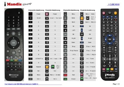 Ein Dokument ist enthalten, um die Verwendung der neuen Fernbedienung zu erleichtern, indem es die Tastenbelegung zeigt.