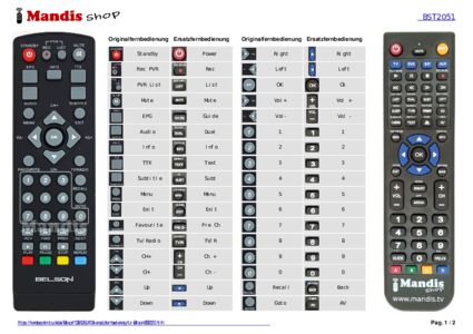 Ein Dokument ist enthalten, um die Verwendung der neuen Fernbedienung zu erleichtern, indem es die Tastenbelegung zeigt.