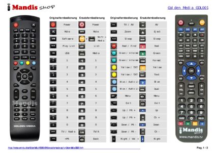 Diese Fernbedienung ersetzt die meisten Funktionen Ihres GOL001. Es ist keine Universalfernbedienung, sondern eine Kopie mit den meisten Tasten und Funktionen Ihres Originals.