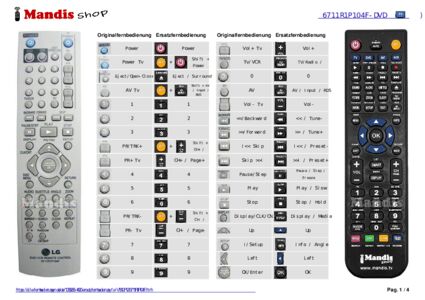 Ein Dokument ist enthalten, um die Verwendung der neuen Fernbedienung zu erleichtern, indem es die Tastenbelegung zeigt.