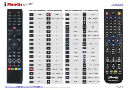 Diese Fernbedienung ersetzt Ihre RCA48105 (23480574) in vollem Umfang und bietet alle Funktionen des Originals.