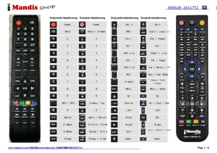 Ein Dokument ist enthalten, um die Verwendung der neuen Fernbedienung zu erleichtern, indem es die Tastenbelegung zeigt.