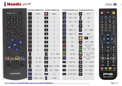 Diese Fernbedienung ersetzt Ihre MG715 (TP 715) in vollem Umfang und bietet alle Funktionen des Originals.