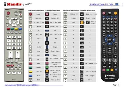 Ein Dokument ist enthalten, um die Verwendung der neuen Fernbedienung zu erleichtern, indem es die Tastenbelegung zeigt.