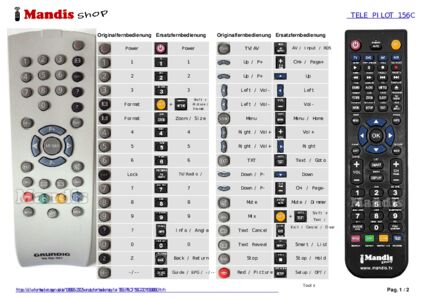 Ein Dokument ist enthalten, um die Verwendung der neuen Fernbedienung zu erleichtern, indem es die Tastenbelegung zeigt.