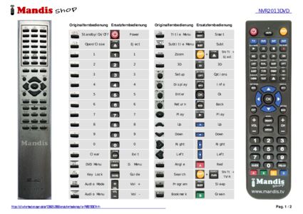 Ein Dokument ist enthalten, um die Verwendung der neuen Fernbedienung zu erleichtern, indem es die Tastenbelegung zeigt.