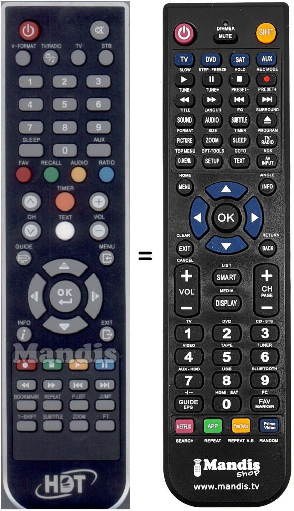 Es handelt sich jedoch nicht um eine Universalfernbedienung sondern um eine Fernbedienung die das Original ersetzt.