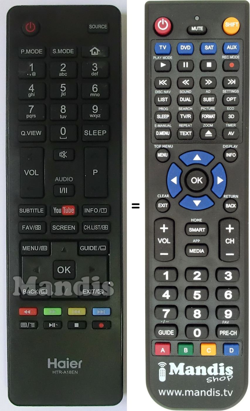 Home > Marken > Fernbedienungen Haier > Fernbedienung für HAIER HTR-A18EN (0530015562)