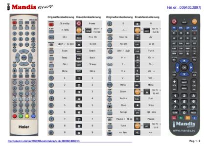 Ein Dokument ist enthalten, um die Verwendung der neuen Fernbedienung zu erleichtern, indem es die Tastenbelegung zeigt.