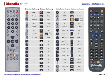 Diese Fernbedienung ersetzt die meisten Funktionen Ihres 0094008163A. Es ist keine Universalfernbedienung, sondern eine Kopie mit den meisten Tasten und Funktionen Ihres Originals.